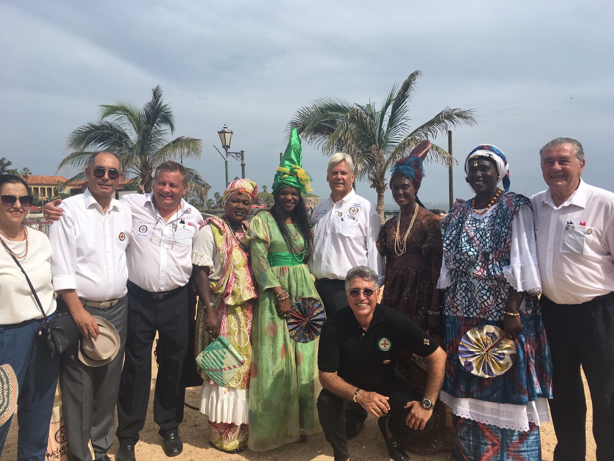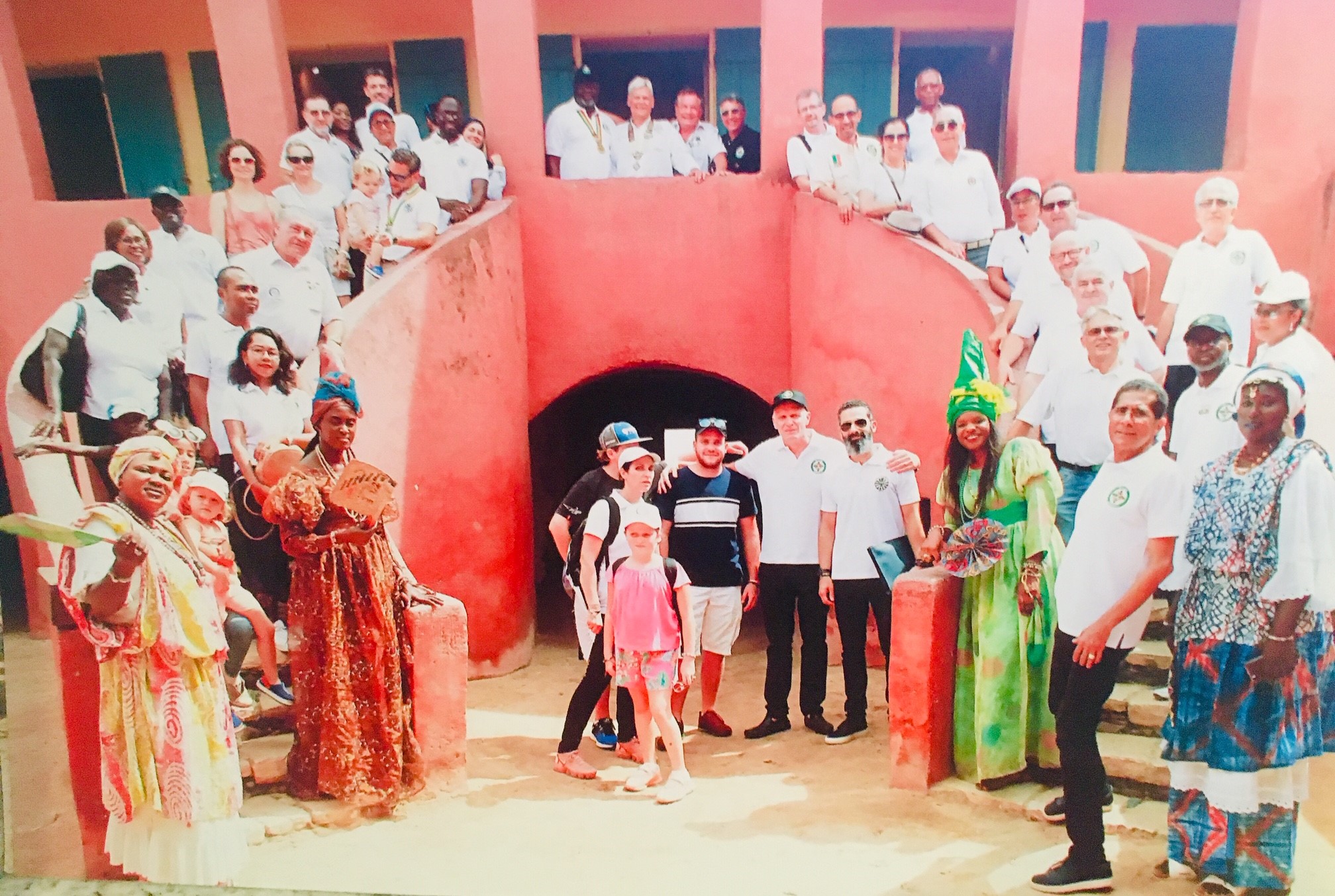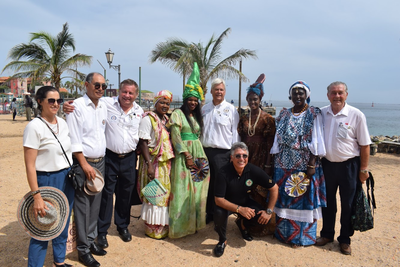 About 60 41er and Tablers took the ferry at 30* Celsius to Gotto, an island in viewdisdance to Dakar and the former center of the slavery! About 80 Million of black people was brought to America between 17th and 19th centuries! After visiting the Museum of the Slavary House we was invited of the Governer of the Island in the city hall! The ceremony was accompanied through the representatives of The Godfathers from Morocco- P Said Khandid and Iro Bachir Namany, and France- P Alex Frizel and PP Francois Motillon and me! I had the honor to explain our 41 International world with an historical overview and our actual values: friendship – partnership- family and service, and our actuall vision : make a Tabler a year! Than followed the adresses from The Godfathers, RT Senegal and the Governer! The whole ceremony and signing the Charter document was very grave! The new P Francois presented the 20members and declared the wonderful friendship in the club, the national and international contacts and the strong link to Rt and a strong service project! It was a great punch for our ideas!